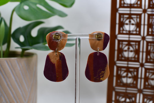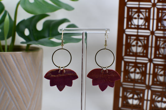Autumn Marbled Lotus Leaf Dangle Earrings with Gold Circle Accent