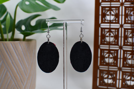 Black Era Glittery Red Snake Oval Dangle Earrings