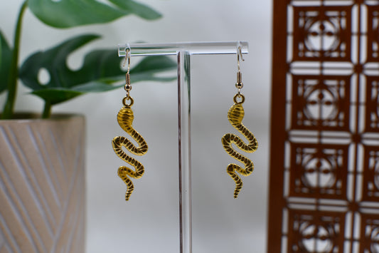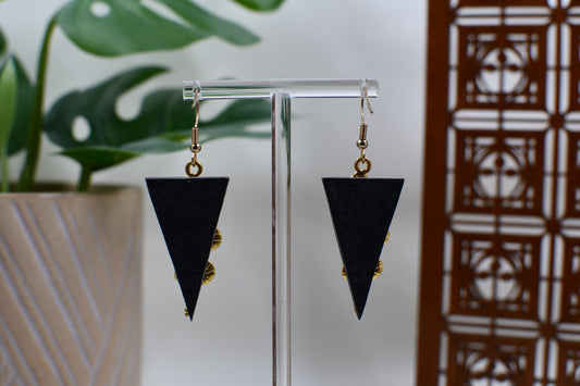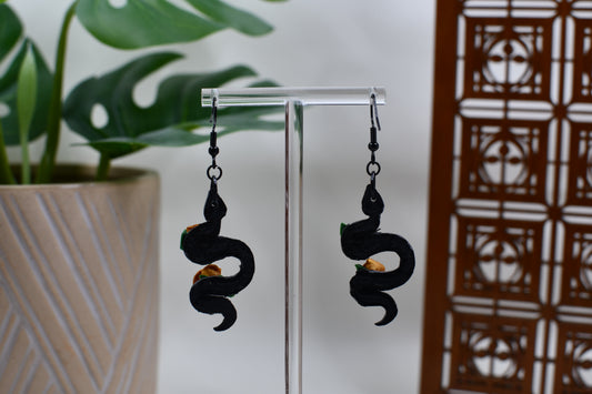 Black Era Gold Snake with Black Triangle Background Dangle Earrings