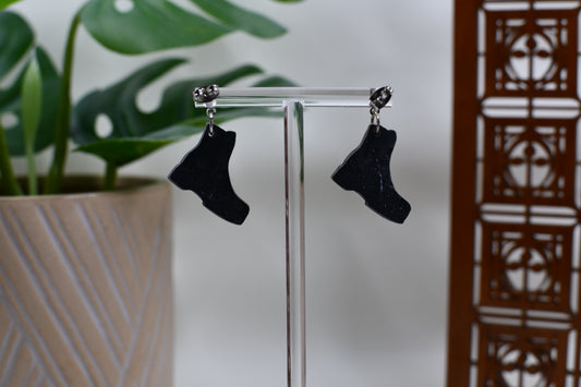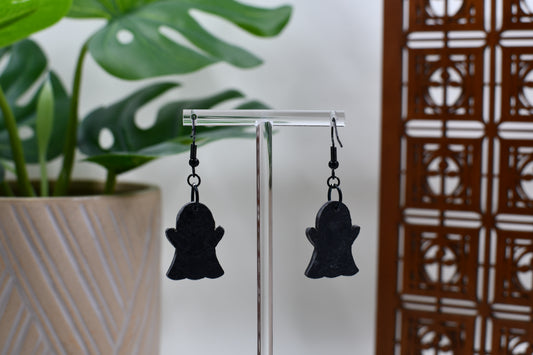 Black Matte Quilted Spooky Ghost Dangle Earrings