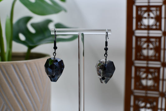 Black Glass Geometric Spooky Skull Dangle Earrings