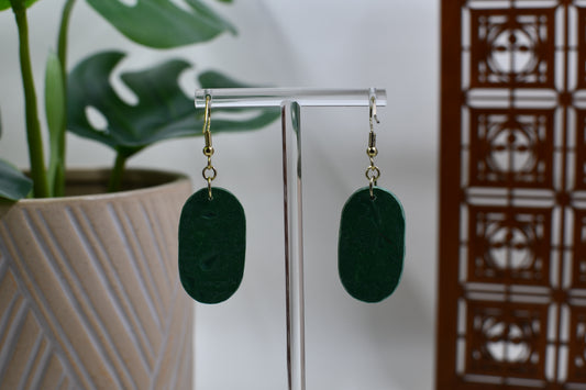 Green Christmas Pattern Embossed Oval Dangle Earrings