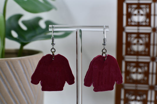 Red Knit Christmas Pine Tree Sweater Dangle Earrings