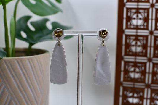 Red/White/Gold Soft Marbled Art Deco Drop Stud Earrings