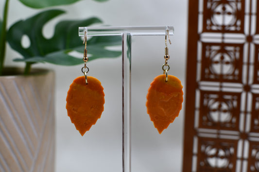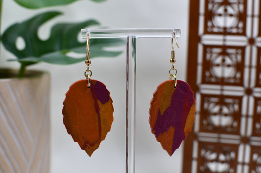 Orange and Yellow Marbled Autumn Leaf Dangle Earrings