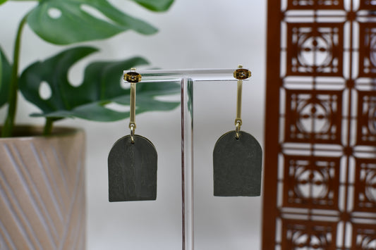 Sage Green Arch Drop Stud Earrings with Gold Bar and Circle Accents