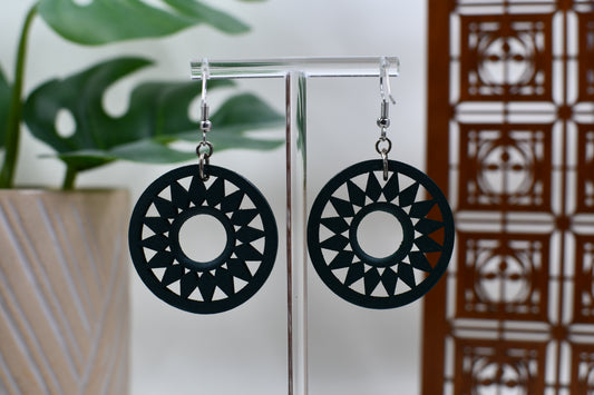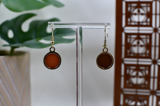 Autumn Marbled Lotus Leaf Dangle Earrings with Gold Circle Accent