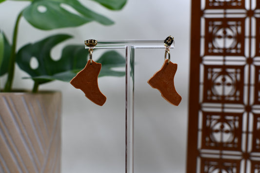 Orange Floral Embossed Fall Boots Drop Stud Earrings