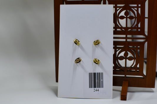 Mismatched Light & Dark Green Gold Trimmed Dangle Earrings
