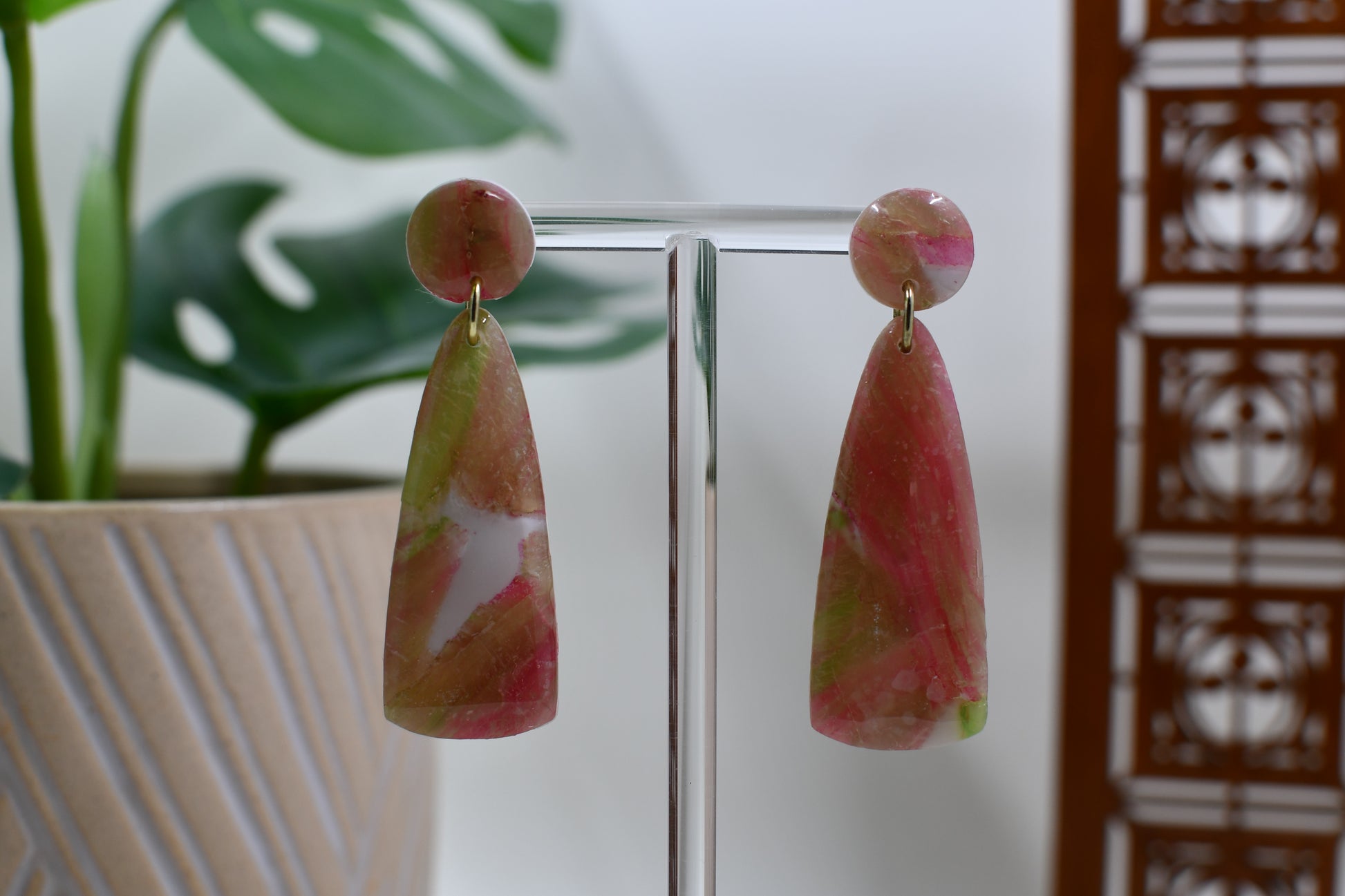 Delicate watercolor tear drop studs that bring a splash of artistic charm to your everyday look. Each pair features soft blends of green and red clay in a watercolor style that feels uniquely personal. Perfect for adding a touch of warmth and creativity to your collection, these lightweight drop studs are comfortable enough for all-day wear. Whether you're dressing up or keeping it casual, they're the kind of accessory that makes you smile every time you catch your reflection.