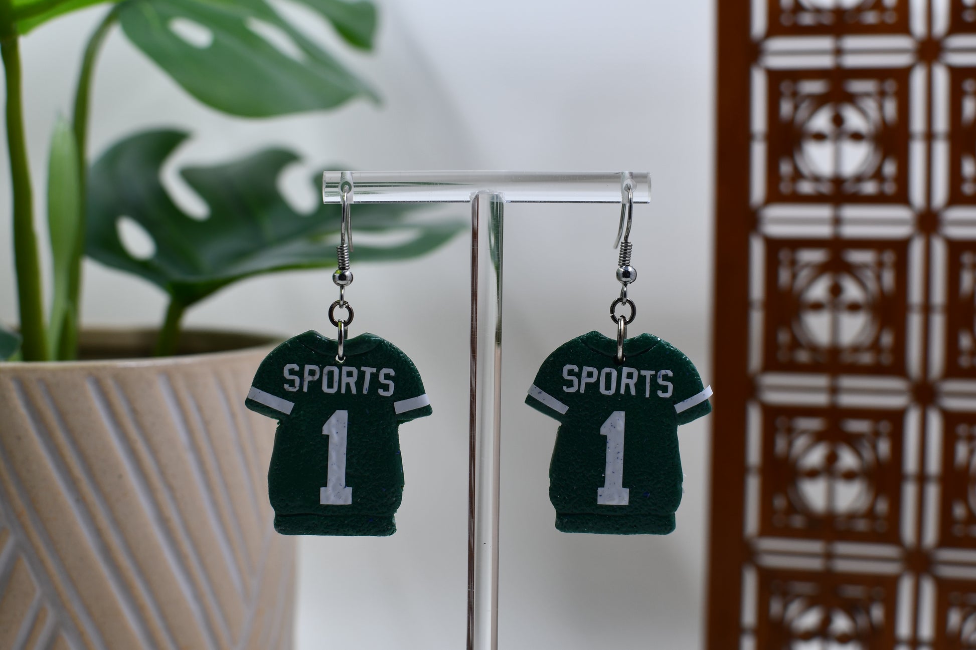 Celebrate your team spirit with these Green Sports Football Jersey Dangle Earrings. Lightweight and eye-catching, they add a fun, sporty touch to any outfit while showing off your love for the game. Perfect for game days or casual wear, these earrings are designed to keep you comfortable and stylish.