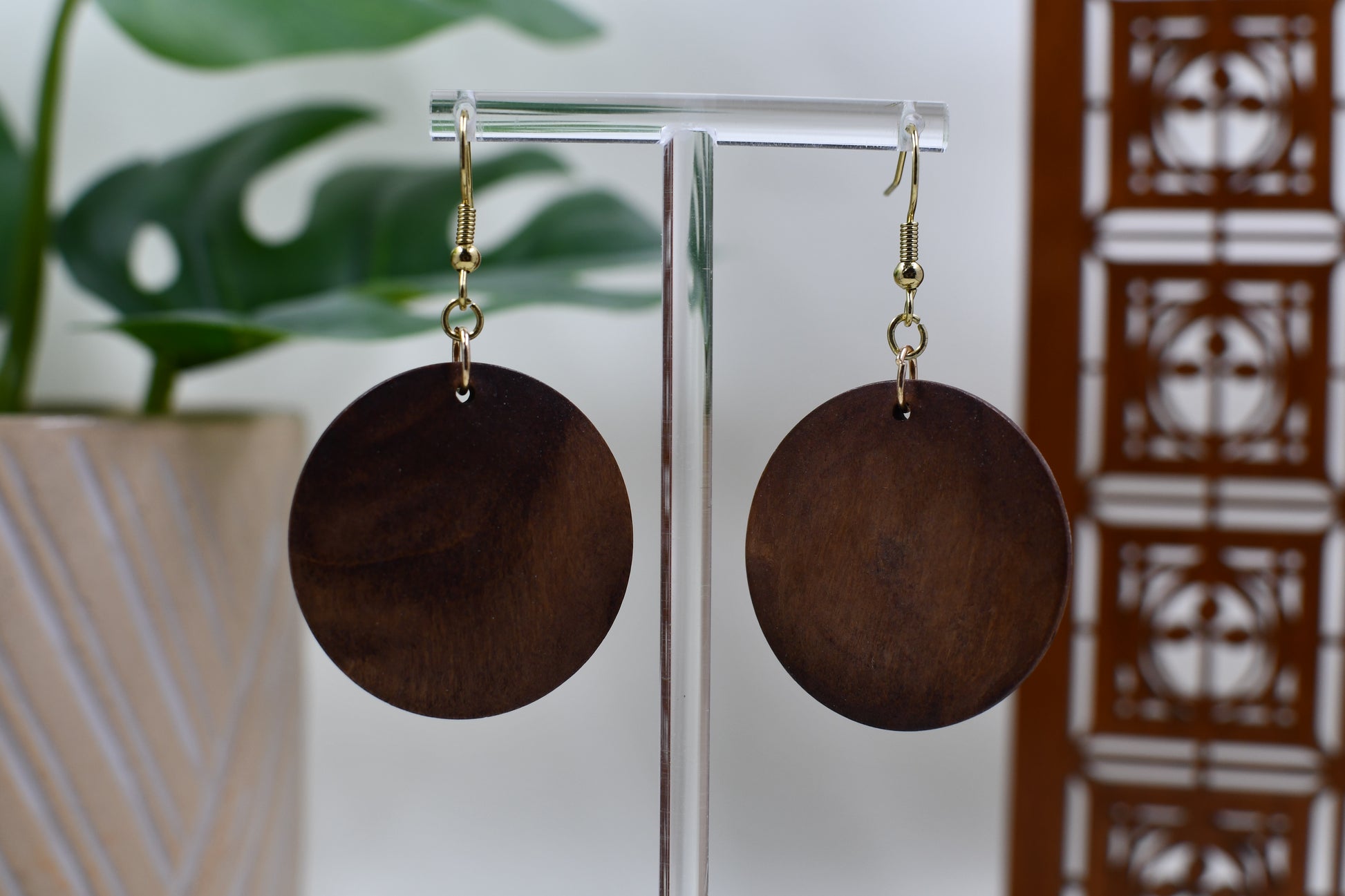These Wood Coin Dangle Earrings bring a warm, natural touch to any outfit. Crafted from smooth, lightweight wood, they sway gently with your movements, adding effortless charm. Their simple, earthy design makes them perfect for everyday wear or cozy gatherings, inviting a sense of comfort and understated style.